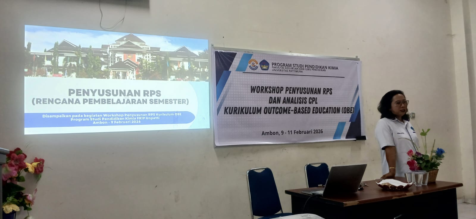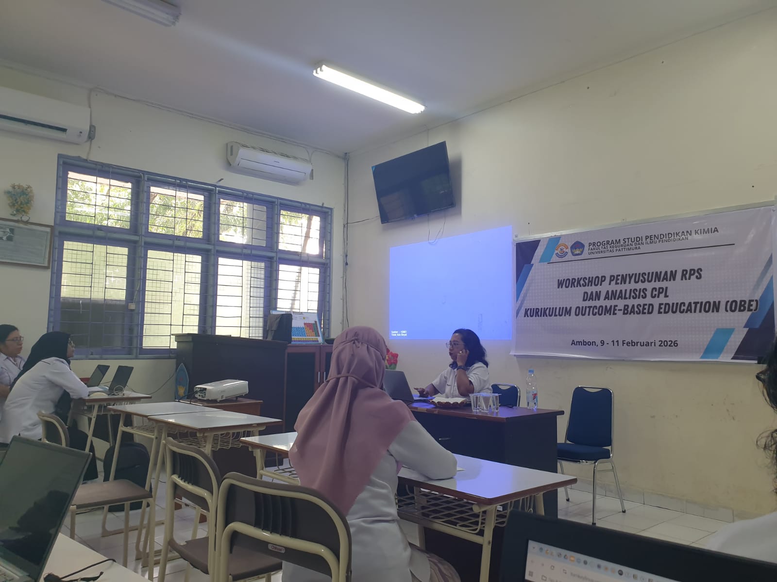 Program Studi Pendidikan Kimia Fakultas Keguruan dan Ilmu Pendidikan (FKIP) Universitas Pattimura menyelenggarakan Workshop Penyusunan Rencana Pembelajaran Semester (RPS) Kurikulum Outcome-Based Education (OBE) pada Senin, 9 Februari 2026. Kegiatan ini dilaksanakan di Ruang Kuliah 1 Program Studi Pendidikan Kimia.